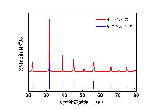 1.陶瓷靶材制备方法:采用99.99%纯度TiO2以及99.99%纯度BaCO3粉末,按化学计量比配料,球磨混合均匀,1000℃预合成后,在大于1100度下通过常压烧结制备靶材。